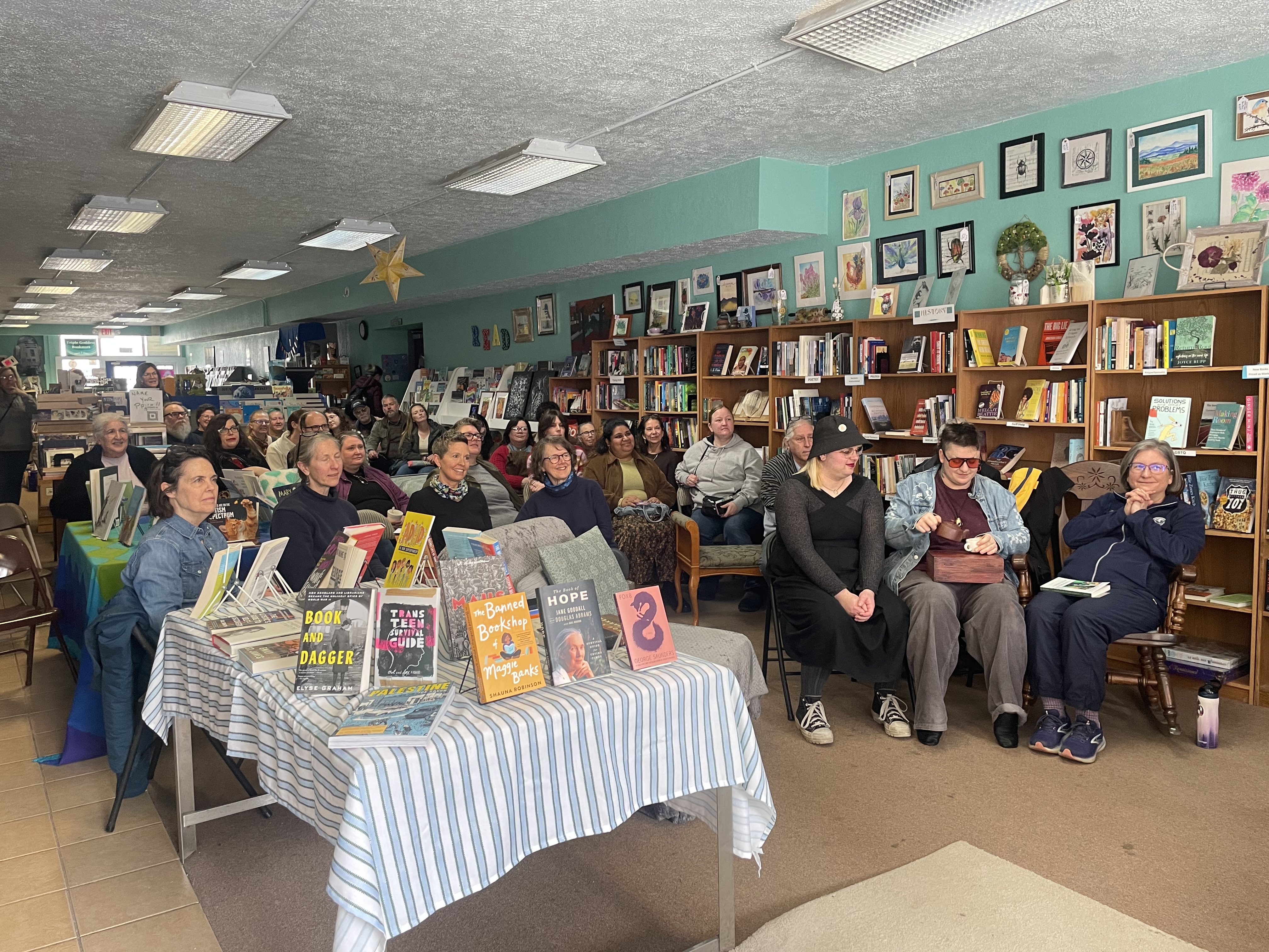 What great fun! So many people, including friends I’ve known for decades and people I’ve never met. We even had five of the artists whose work appears in the book in attendance (Mary Jane Pories, Steve Smith, Bex Miller, Lux, and Z).